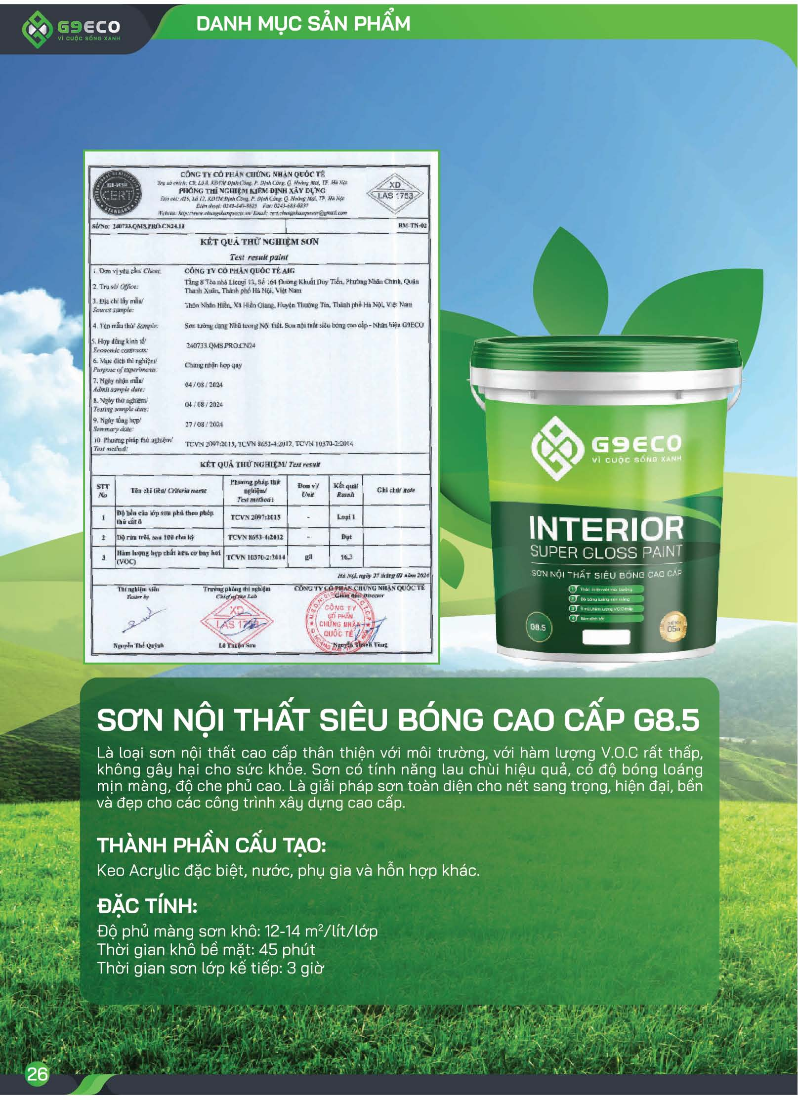 Là loại sơn nội thất cao cấp thân thiện với môi trường, với hàm lượng V.O.C rất thấp, không gây hại cho sức khỏe. Sơn có tính năng lau chùi hiệu quả, có độ bóng loáng mịn màng, độ che phủ cao. Là giải pháp sơn toàn diện cho nét sang trọng, hiện đại, bền và đẹp cho các công trình xây dựng cao cấp.