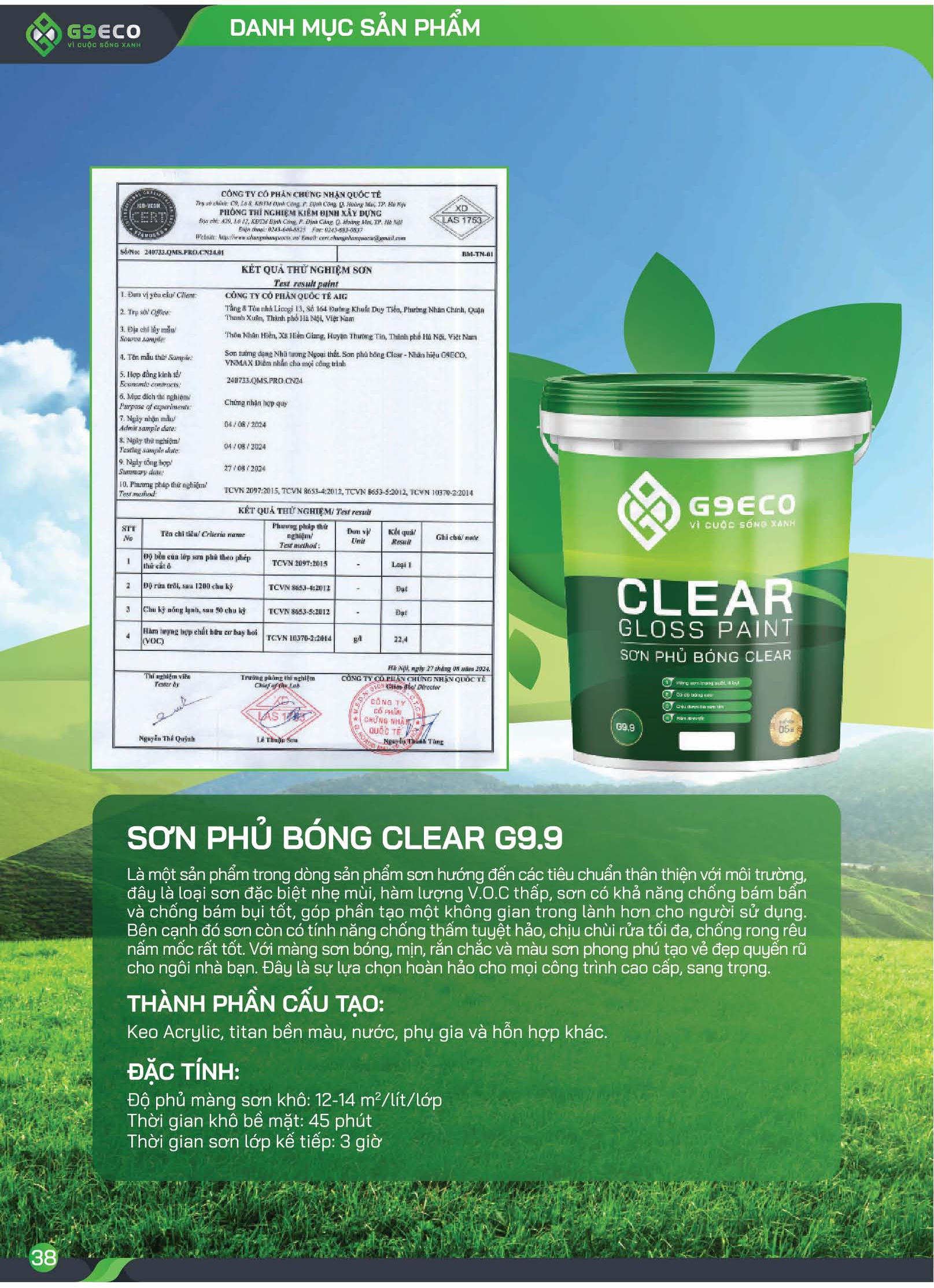 CLEAR G9.9: Có khả năng giảm bụi bám so với các loại phủ bóng khác, vì vậy duy trì được lâu hơn vẻ bề ngoài mới mẻ của sơn.