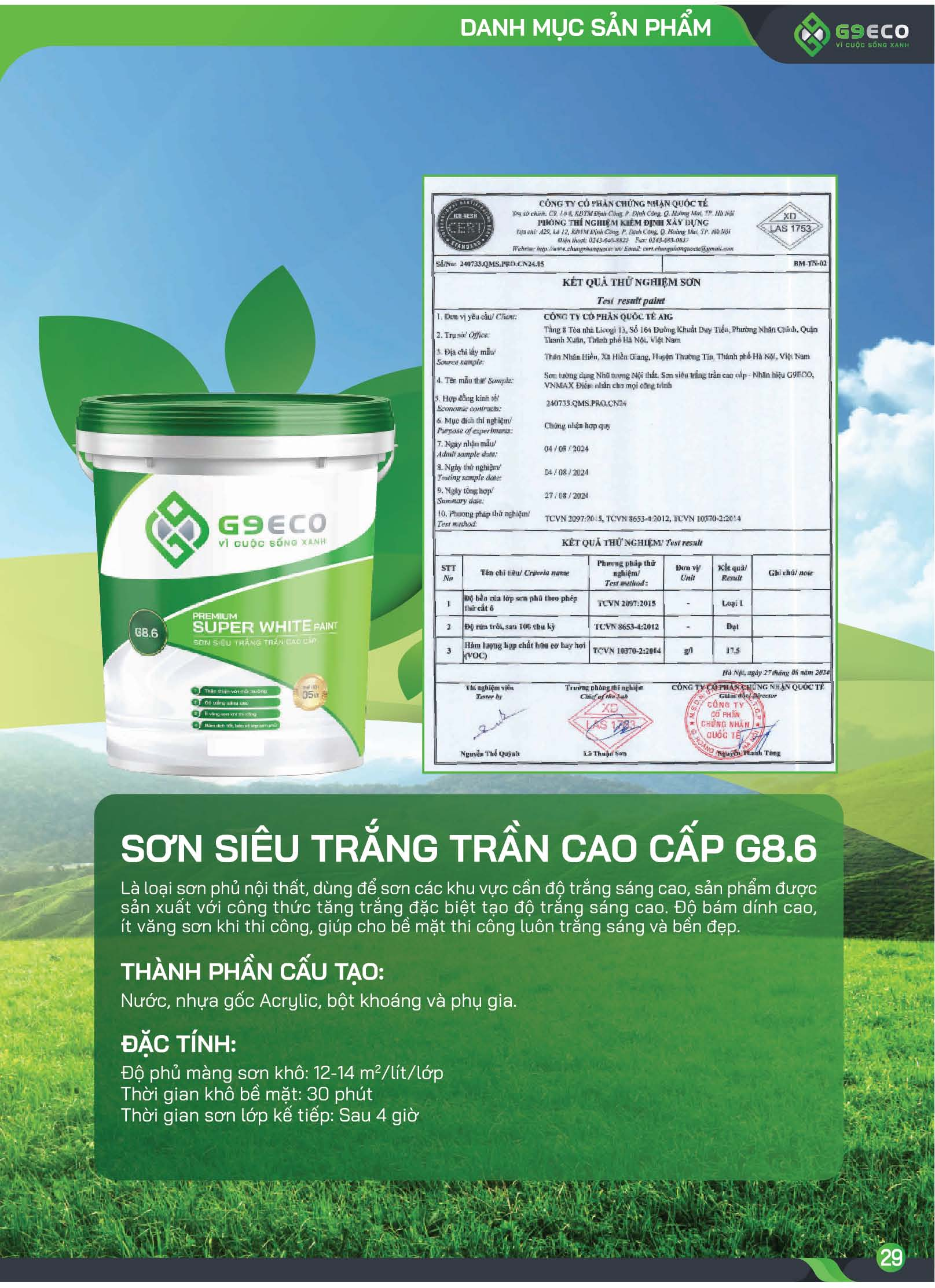 Là loại sơn phủ nội thất, dùng để sơn các khu vực cần độ trắng sáng cao, sản phẩm được sản xuất với công thức tăng trắng đặc biệt tạo độ trắng sáng cao. Độ bám dính cao, ít văng sơn khi thi công, giúp cho bề mặt thi công luôn trắng sáng và bền đẹp.
